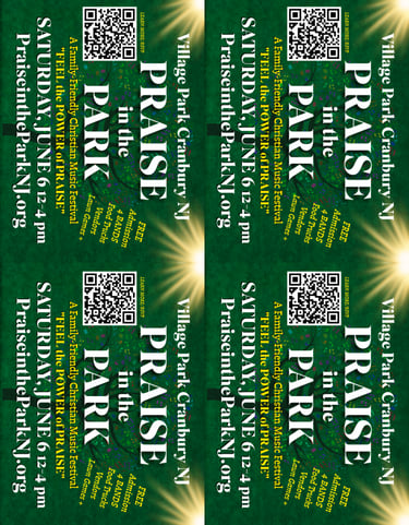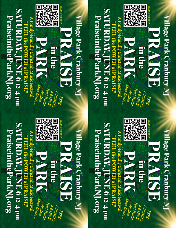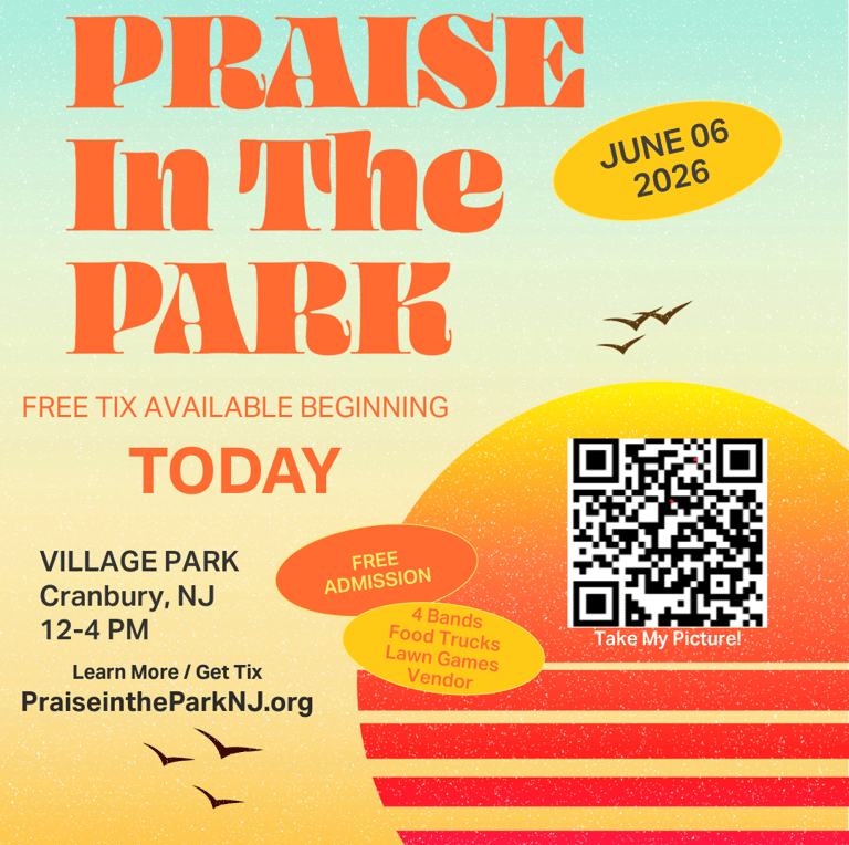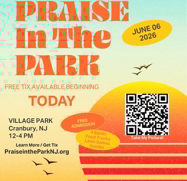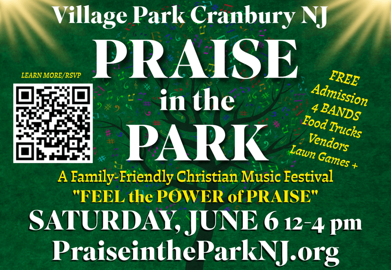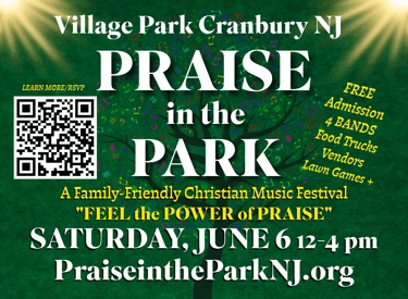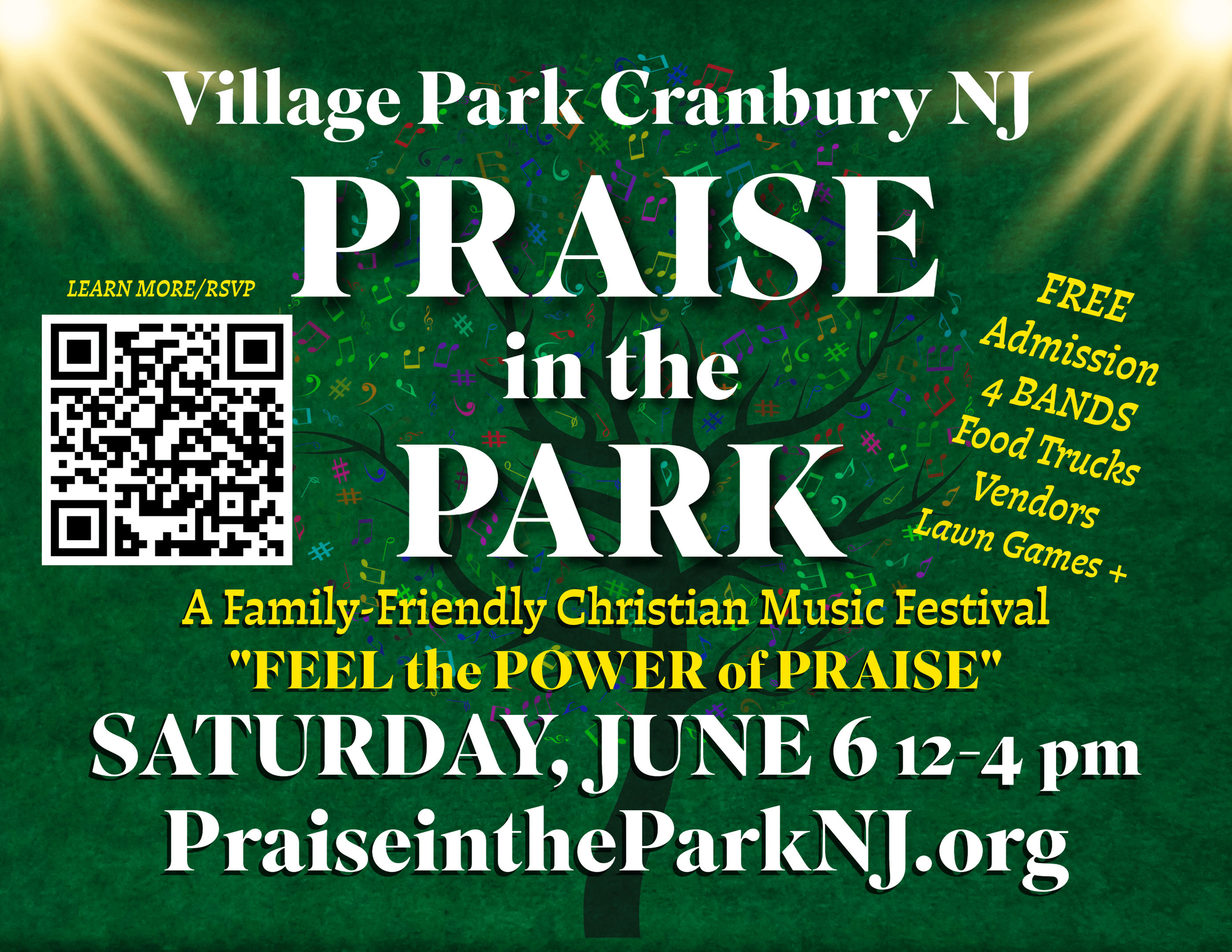 Join us SATURDAY, JUNE 6, 2026 at Village Park, Cranbury, NJ for a joyful day of faith, family, and fun at Praise in the Park festival.